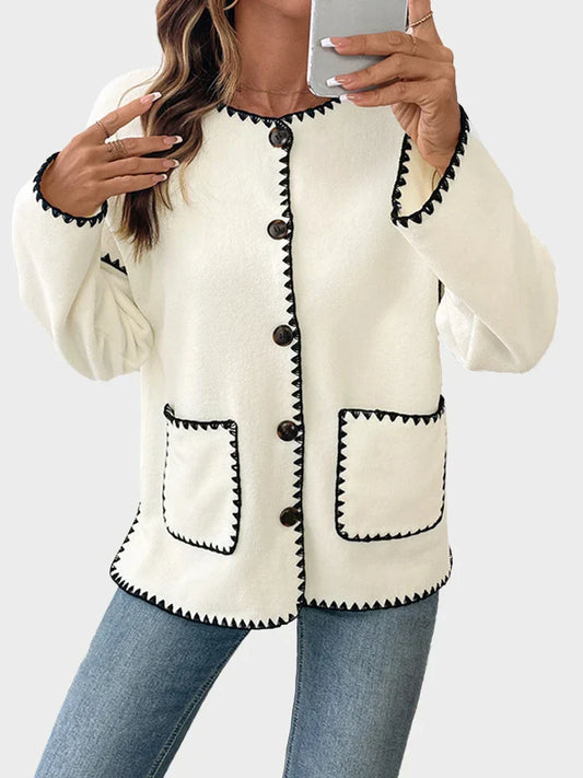Womens Fall Cropped Corduroy JacketsHoundstooth Coat with Pocket